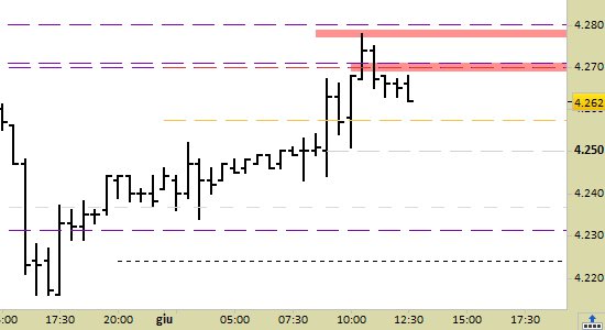 Stop sopra 4280 con una chiusura su grafico a 30 minuti.